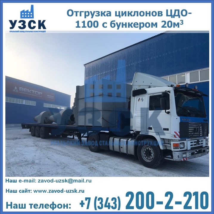 Циклоны ЦДО-1100 с бункером на 20 кубов были отгружены в декабре 2018 года в г. Новосибирск Керчь.