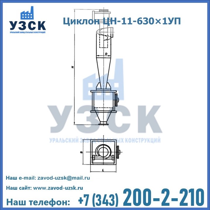 Технические характеристики циклонов ЦН-11-630×1УП: