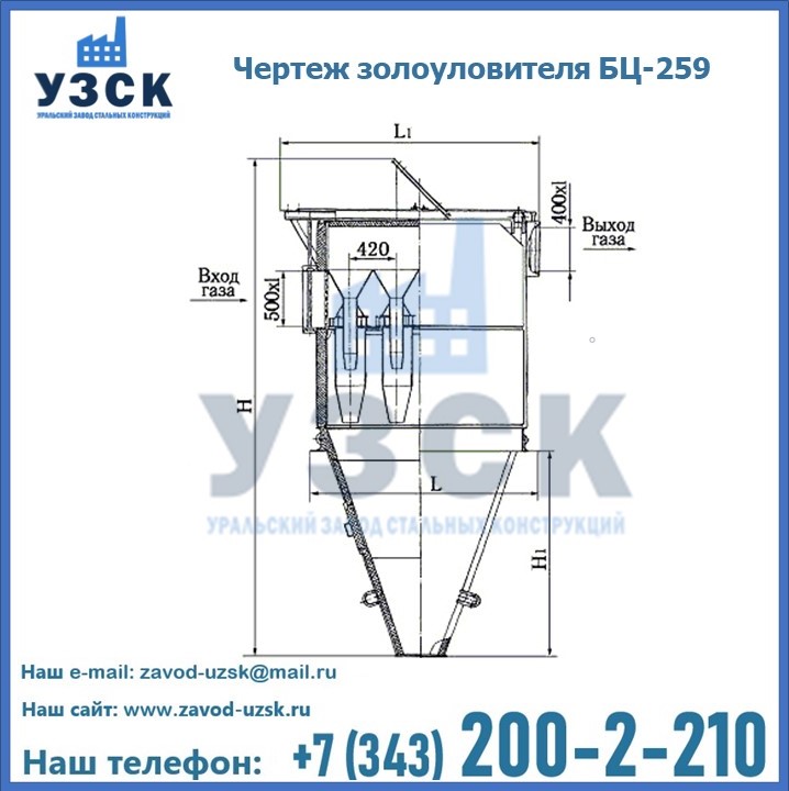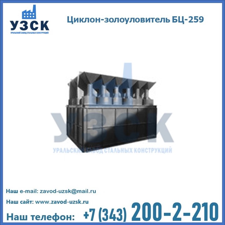 Если вы планируете купить то или иное оборудование, например, циклоны-золоуловители БЦ-259, то рекомендуем заказать данный товар на сайте УЗСК. Мы производим и реализуем продукцию высокого качества по приемлемой цене. Эксперты Уральского Завода Стальных Конструкций в Керчи проконсультируют вас по всем вопросам, помогут сделать выбор и оформить заказ без лишних временных затрат. Мы гарантируем соответствие нашей продукции всем требованиям ГОСТ и ТУ, а также износостойкость и высокую производительность предлагаемого оборудования. Если требуется изготовить циклон нестандартных размеров, то такой вариант выполнения заказа тоже предусмотрен, так как предприятие имеет собственные производственные площади и надежных поставщиков. На все поставляемое или производимое оборудование имеются чертежи и прочая техническая документация. Заказать и купить циклоны или прочее оборудование высокого качества и по доступной цене можно через наш сайт или по указанному в разделе «Контакты» телефону.