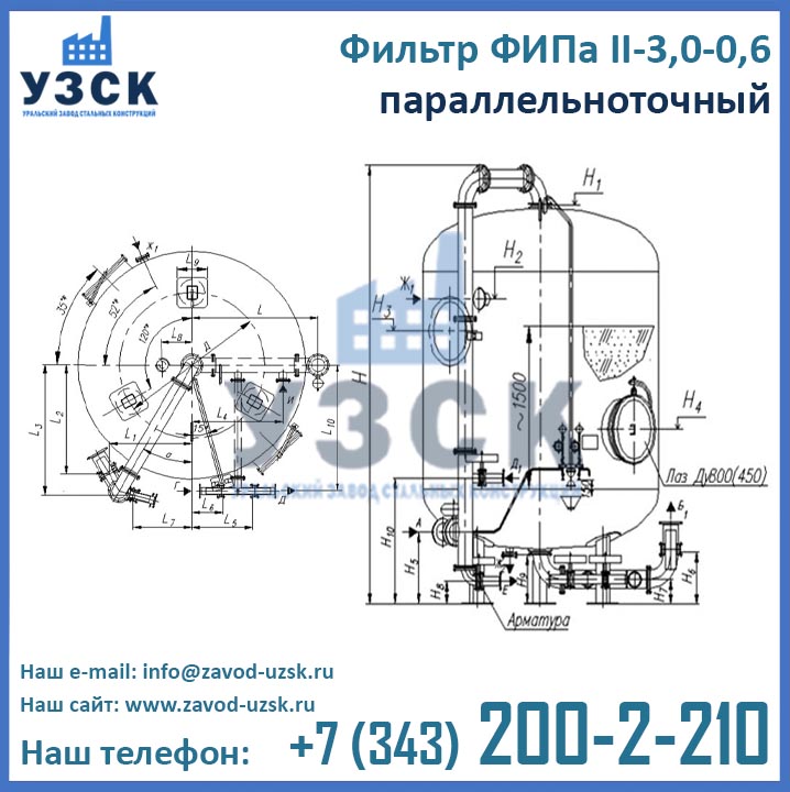 Актуальные цены на ФИПаII-3,0-0,6 в Керчи Вы можете уточнить в отделе продаж Уральского Завода Стальных Конструкций (производитель ионитных фильтров), для этого заполните форму заказа внизу страницы.