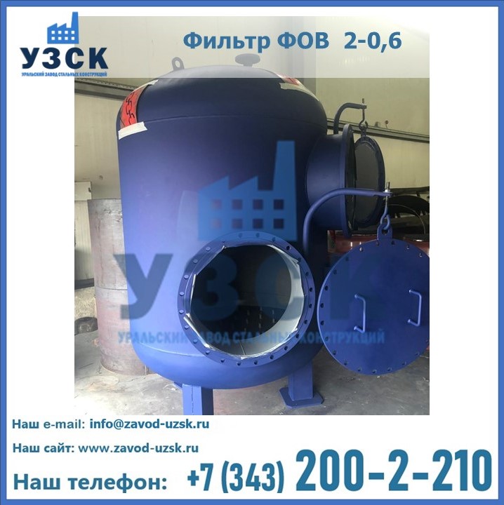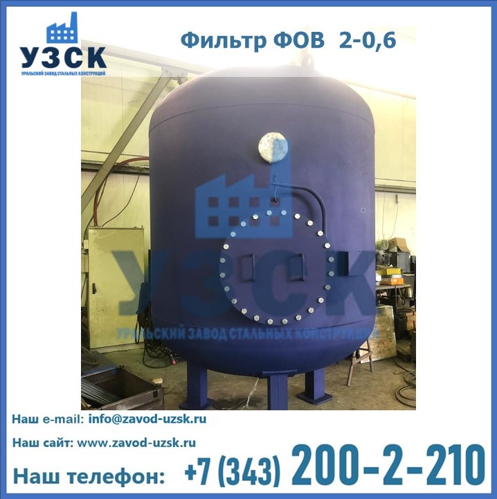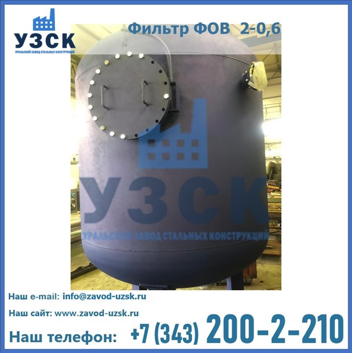 Удаление взвешенных веществ различного уровня дисперсности из рабочих жидкостей эффективно проводит фильтр осветлительный типа ФОВ (скорый или механический) — вертикально-цилиндрической формы установка, разработанная для систем водоподготовки различного класса. Оборудование представляет собой однокамерный агрегат для очистки воды рекомендованный для применения на станциях очистки стоков, в коммунальных котельных, на ТЭЦ, в промышленных отопительных системах и пр. Заказать производство ФОВ фильтров предлагает наш Уральский завод стальных конструкций в Керчи. У нас можно купить фильтрационное оборудование различного класса и типа, в том числе фильтры ФОВ из нержавеющей стали.