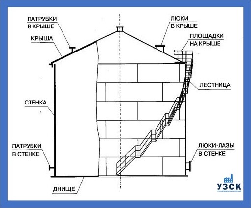 Конструкция резервуара 300 м3 состоит из: